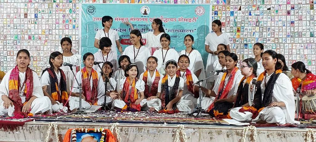 👉15 दिनों मे सीखे गए गुरू जी के गीतों की आकर्षक प्रस्तुति प्रशिक्षु छात्राओं द्वारा की गई, जिसमें संस्कृत गीतों मे राष्ट्रीय एकता, सद्भावना, सैन्य संगीत,कजरी,पूर्वी आदि सभी भाव के गीतों का समावेश था।जिसे कुशल प्रशिक्षिकाओं प्रो. स्वरवंदना शर्मा जी तथा प्रख्यात लोकप्रिय गायिका सुचरिता गुप्ता जी ने सिखाया। हारमोनियम पर मनोहर कृष्ण श्रीवास्तव, तबले पर सन्नी गुप्त, ऑर्गन पर आलोक पाण्डेय तथा तबले पर सुहानी श्रीवास्तव संगतकार रहे।